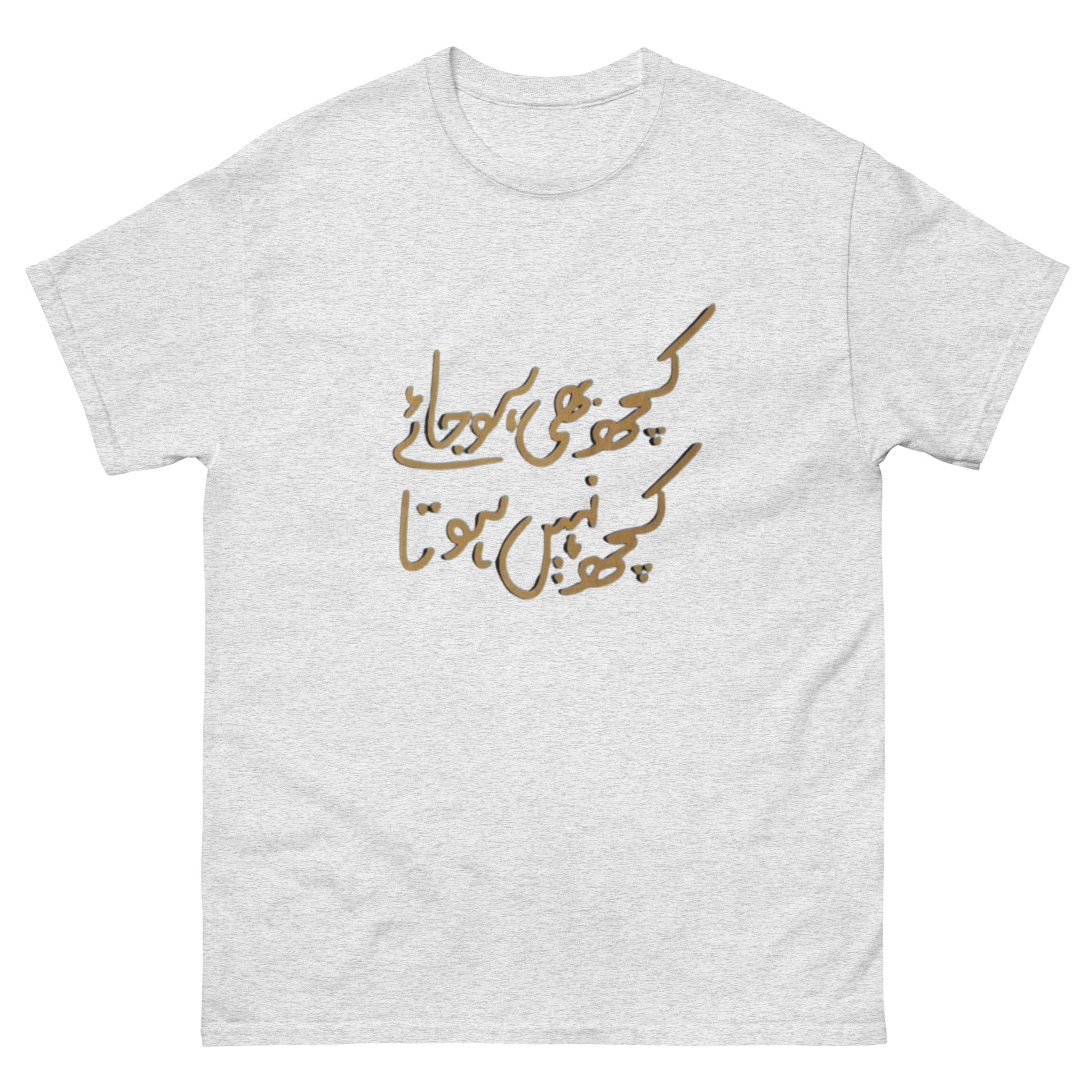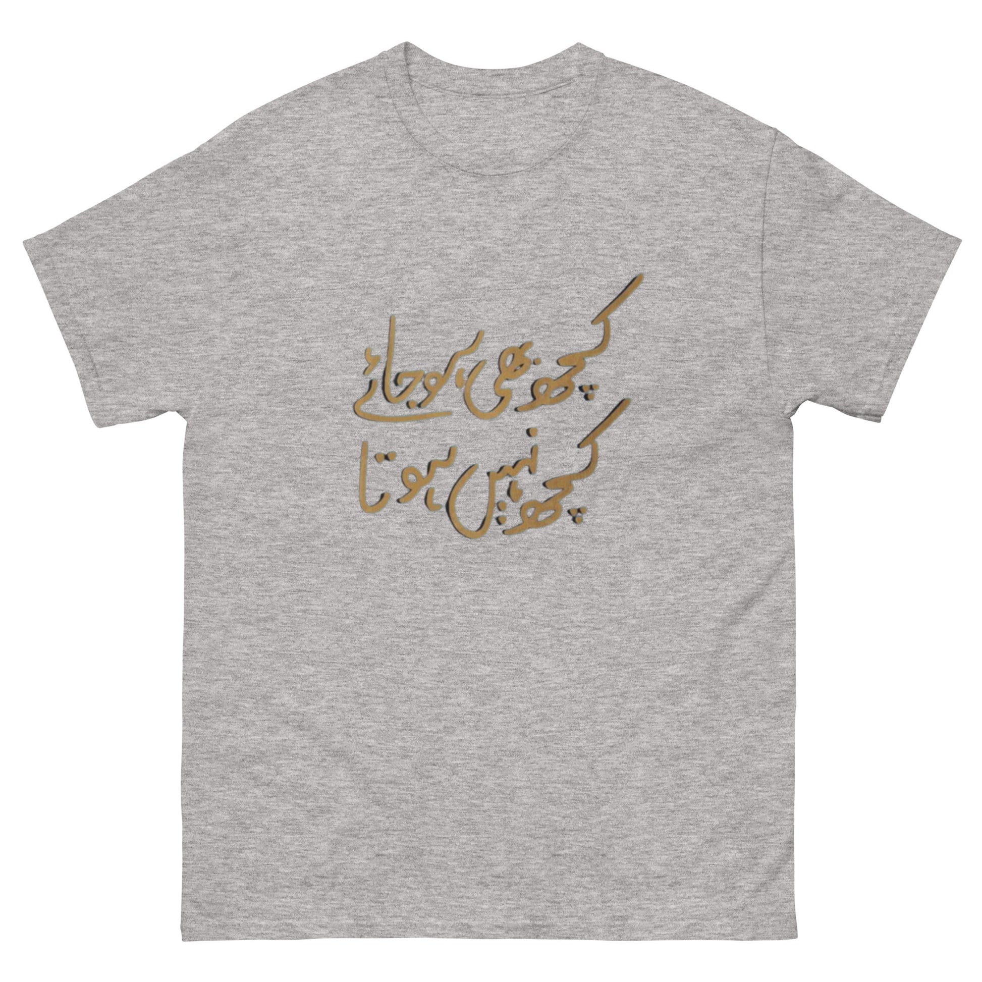 The 100% cotton men's classic tee will help you land a more structured look. It sits nicely, maintains sharp lines around the edges, and goes perfectly with layered streetwear outfits. Plus, it's extra trendy now!
